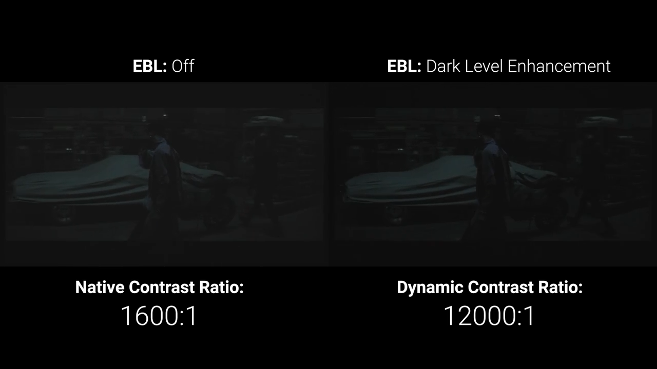 The next option is EBL, which stands for Enhanced Black Level, and it’s Valerion’s version of Laser Dimming. The effectiveness of EBL is basically what sets the Valerion apart from every other projector on the market. If you set EBL to High Dynamic Range the Valerion will attempt to use laser dimming in every scene, dynamically adjusting laser power to get the deepest black levels possible while maintaining bright highlights. If you set it to Dark Level Enhancement, EBL will only activate during darker scenes, and if you set it to off, the Valerion won’t use any laser dimming and you’ll be limited to only the native contrast ratio, which is around 1600:1.