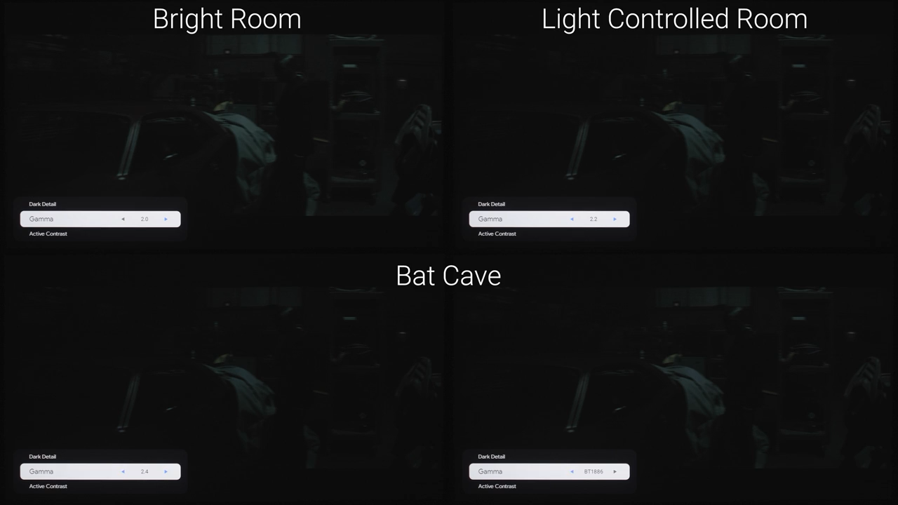 Next, we’re going to skip over contrast and black level for now, to talk about Dark Detail, Gamma, and Active Contrast, which all do very similar things, starting with the broadest adjustment which is Gamma.