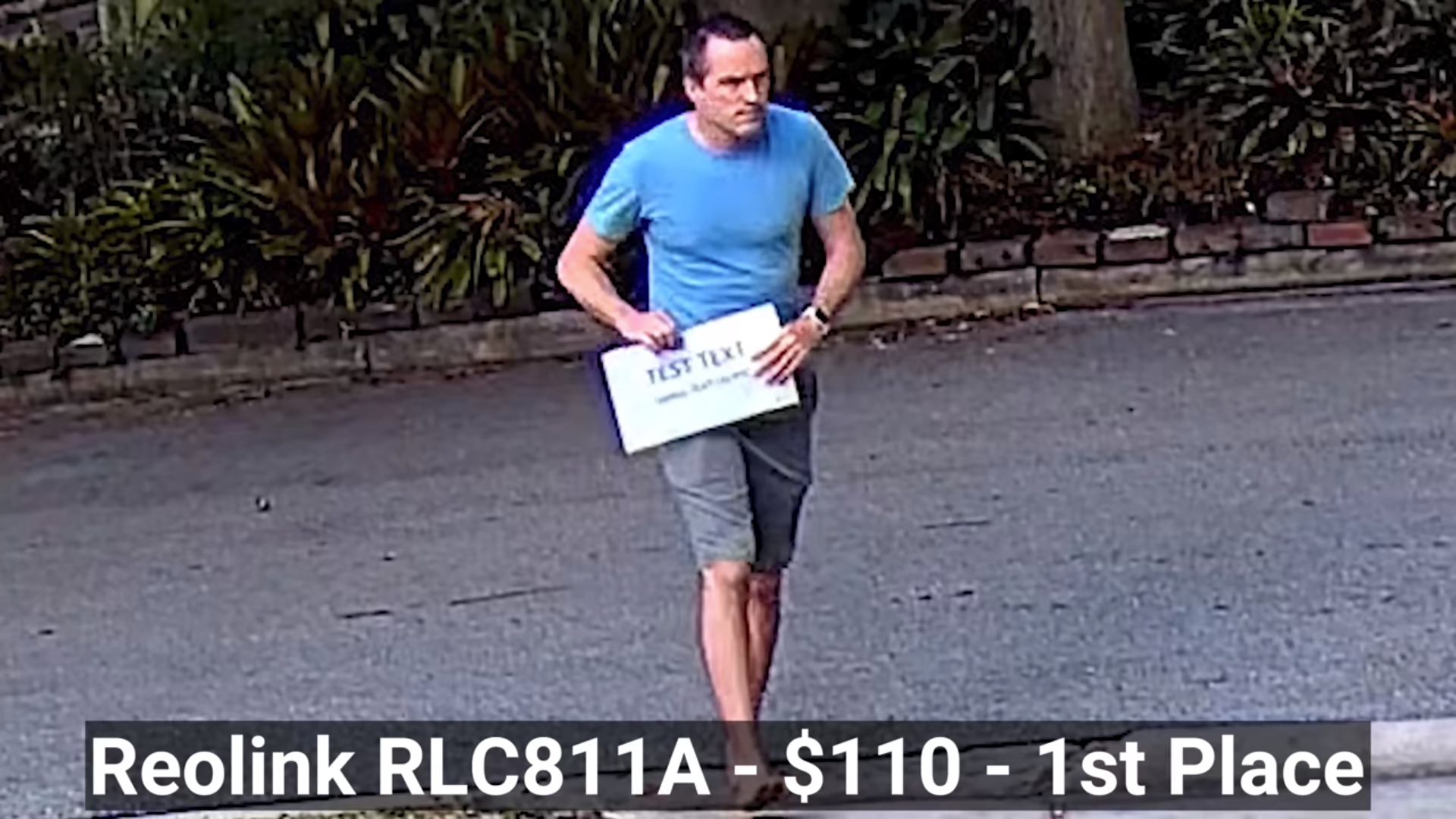 The walking shot from 40 feet had similar results to the stationary shot where the lower resolution cameras performed the worst, but this time the Dahua 5442 was especially bad, while the Reolink RLC510A was low resolution, but acceptable. All the 4K cameras did well, but I ranked the Reolink RLC810A 4th, followed by the Annke B1200, then the UniFi G4 Pro, and I thought the Reolink RLC811A had the best image, reproducing my facial details almost perfectly.