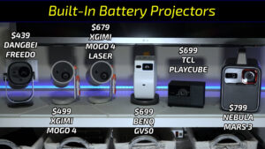 It’s also worth noting that all of the projectors that have included batteries can also run off of a battery bank, so if you need to extend their battery life you can always bring an extra power bank.