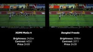 That makes round 2 the $499 XGIMI MoGo 4 on the left and the $439 Dangbei Freedo on the right. While there was only a small difference in their brightness, the Dangbei looked much more vibrant in bright content like golf and football, and all of the colors on the XGIMI MoGo 4 looked muted in comparison.