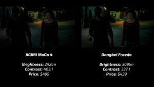 In moderately lit content both projectors were nearly equal except for the XGIMI being shifted more towards blue and the Dangbei was more towards green, but the second any highlights showed up on the screen the Dangbei was noticeably better. Neither projector handled dark content well, so this round was another win for the Dangbei.