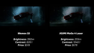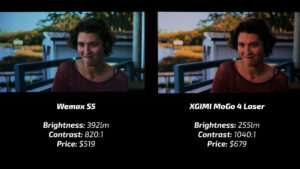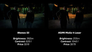 In round 4 the $519 Wemax S5 is on the left and the $679 XGIMI MoGo 4 Laser is on the right. If we start with a moderately dark scene like Wakanda Forever, the XGIMI looks very convincing with deep, eye-catching colors compared to the Wemax but unfortunately, that’s not what those colors are supposed to look like. The XGIMI is using colors way outside of the intended color space, which looks okay in an explosion and on the paint of a car, but can really mess with skin tones of all types. The bright scenes in Gemini Man were a mess, and I couldn’t find any settings on the XGIMI that would force it to use the color space defined by the content. That’s a shame because overall I really enjoyed the contrast of the MoGo 4 Laser and the ability to produce more colors using lasers can potentially lead to a much better picture if implemented properly. But to me the colors XGIMI MoGo 4 Laser just looked too off for me to send it on and the Wemax S5 moves on instead.