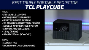 However, if you have your heart set on something small that you can throw in a backpack, the TCL PlayCube is the only one that I would call a “complete package.” It has decent brightness, good speakers, a useful aiming system, and lasts about an hour and a half on maximum brightness using its built-in battery. Overall, it just feels sturdy and well built.