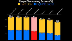 Last, the most expensive vacuum in this video with an MSRP of $1899 but a common sale price around $1499 is the 3i S10 Ultra, which has some pretty incredible features we’ll talk about later. But as for high pile carpet vacuuming performance, the S10 was slightly below average cleaning for 51 minutes and picking up just 20.2 grams or 50.5% of the debris mixture. After the auto empty process, the 3i had by far the most leftover debris in its bin at 4.9 grams.